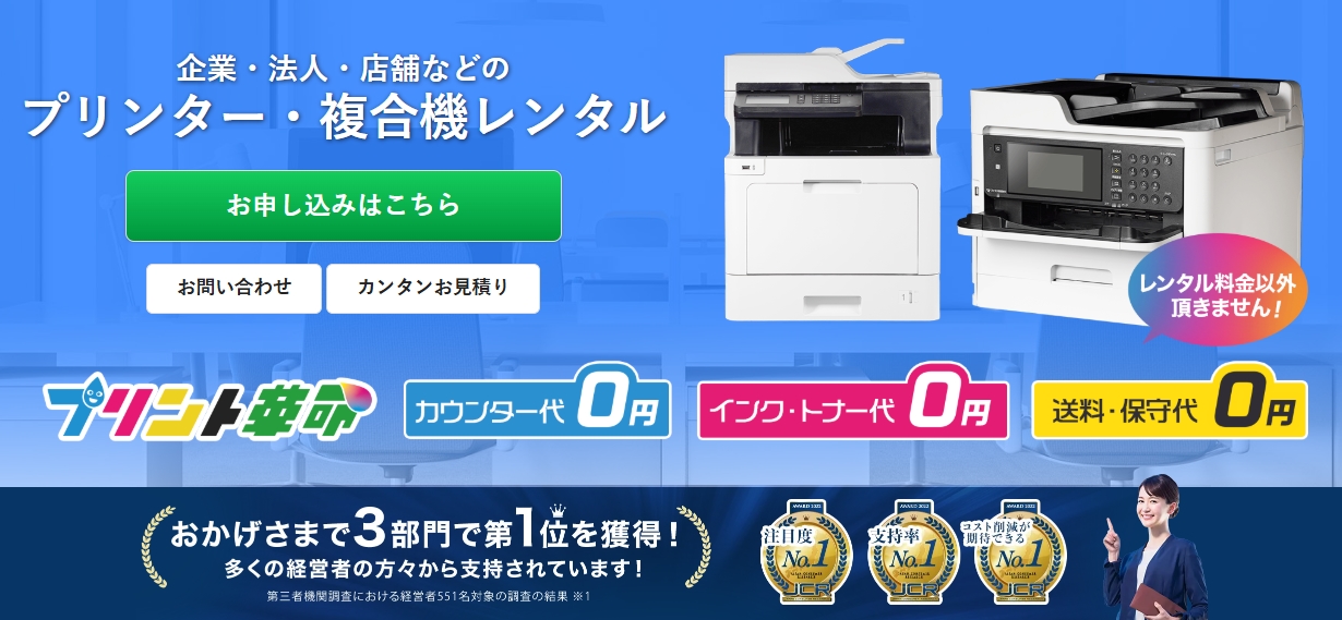 そんな方におすすめしたいのが、定額制レンタルプリンターサービスの【プリント革命】です。プリンター本体の購入も不要、インク代も無料、月額料金だけでカラー印刷が使い放題。これまでのプリンターに関する常識を覆すサービスとして、多くの利用者から高い評判を得ています。