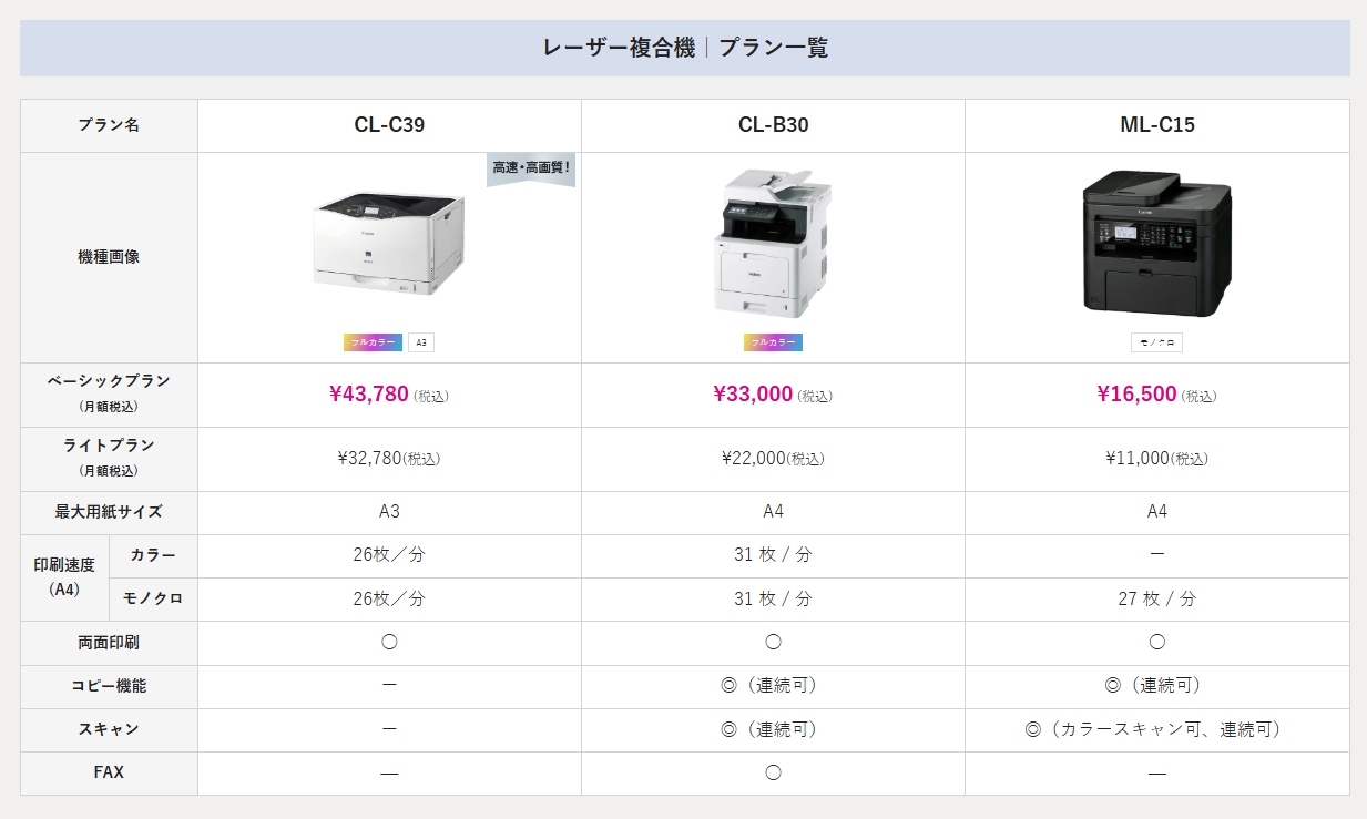 | スタンダードプラン | 4,980円 | 中小企業向け。A3対応。 |